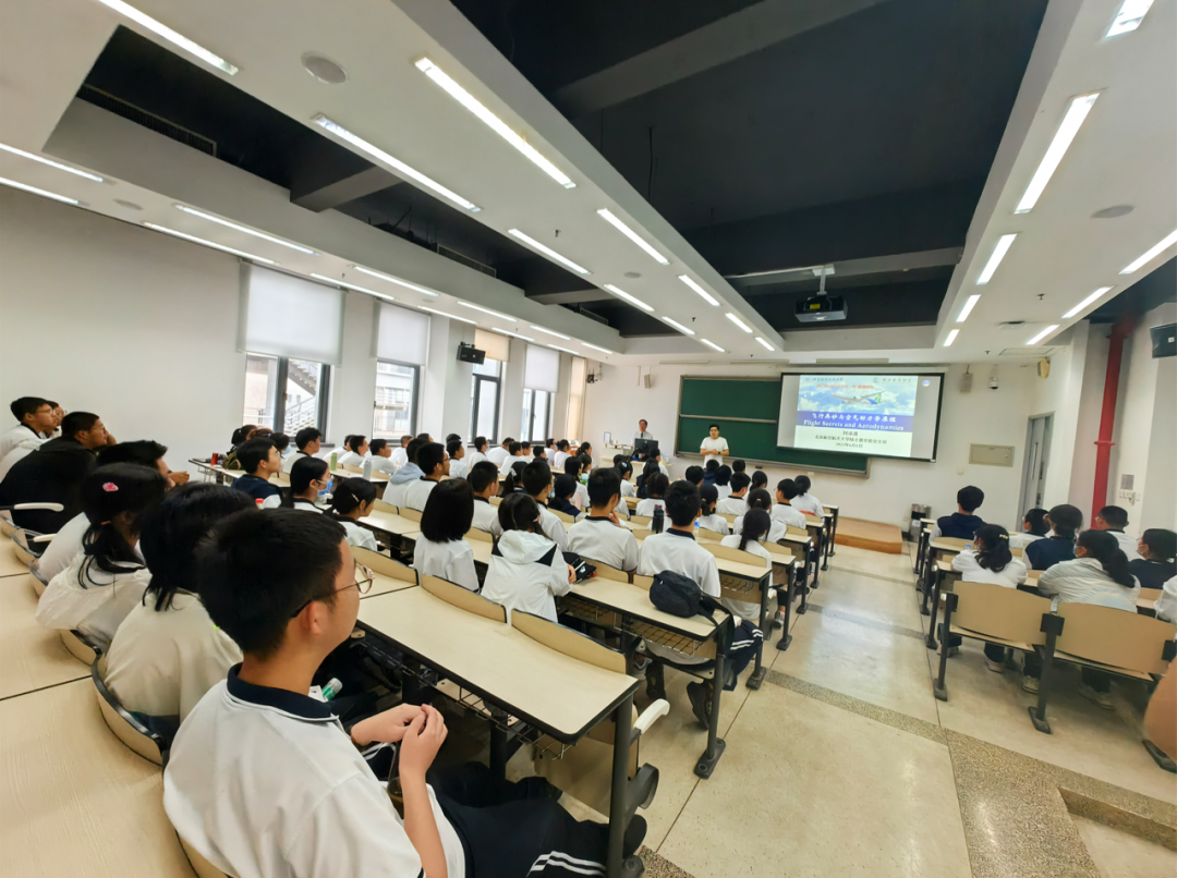 在活动中,实验室主任刘沛清教授为学子们现场讲授了《飞行奥妙与空气动力学原理》。这一科普讲座让同学们重温了近千年来的人类飞行发展史,并介绍了空气动力学的发展历史,包括陆士嘉、钱学森等老一辈科学家们的生平事迹和航空报国热情。同学们也在实验室老师的带领下,参观体验了包括翼型尾缘噪声实验、空腔噪声实验等在内的各种气动声学实验,了解了气动声学风洞的工作原理等,现场学习氛围非常浓厚。