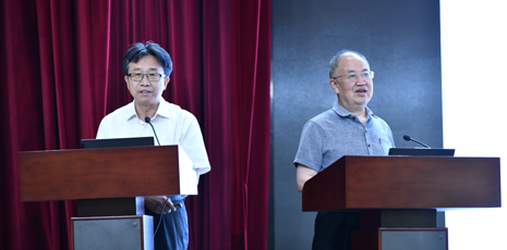 白照广研究员主持会议,伴随着音乐声,特邀报告专家范含林研究员和徐进良教授指导三位青年报告专家举行青春智库的加入仪式。
