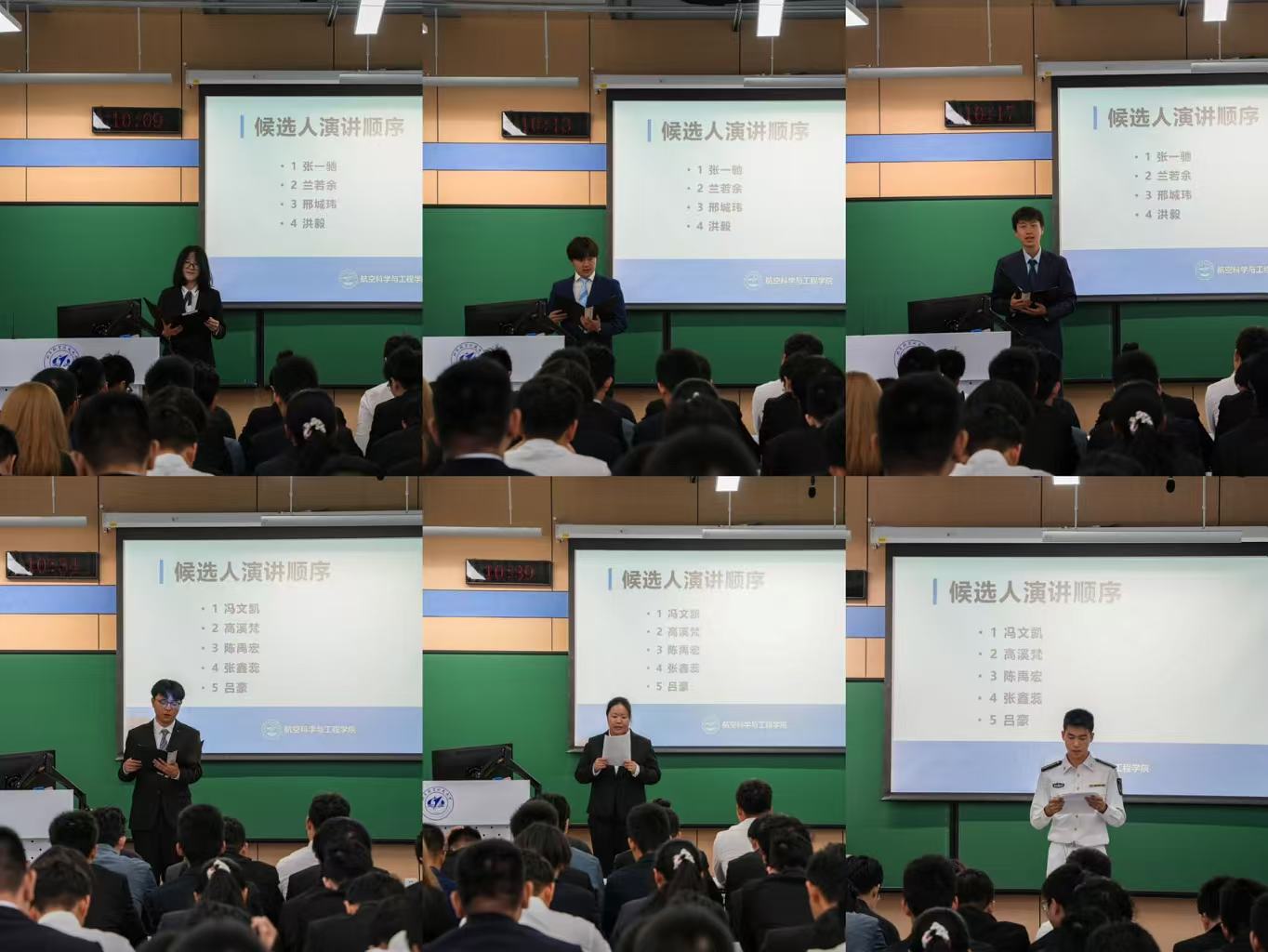 会议投票选举第七十一届学生会主席团成员和第三届青年志愿者协会会长团成员。竞选阶段,九位候选人在演讲中总结个人发展、许下未来期盼,真挚表达了自己对学生工作的初心和热忱奉献的决心。最终,大会选举了张一弛、兰若余、邢城玮担任北京航空航天大学航空科学与工程学院学生会第七十一届主席团成员,选举了陈禹宏、高溪梵、冯文凯担任第三届青年志愿者协会会长团成员。