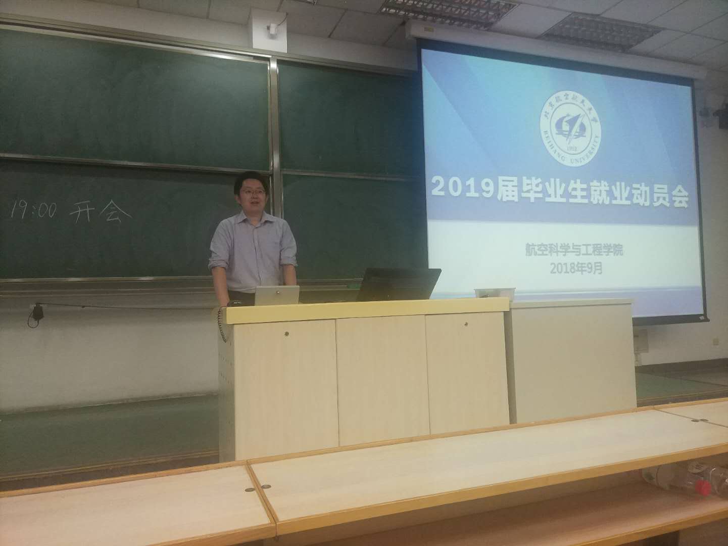 2018年9月25日19:00,航空学院2019届毕业生就业动员会在主M401召开。我院党委副书记梁颖华、应届毕业生辅导员以及全体毕业生参加了大会。