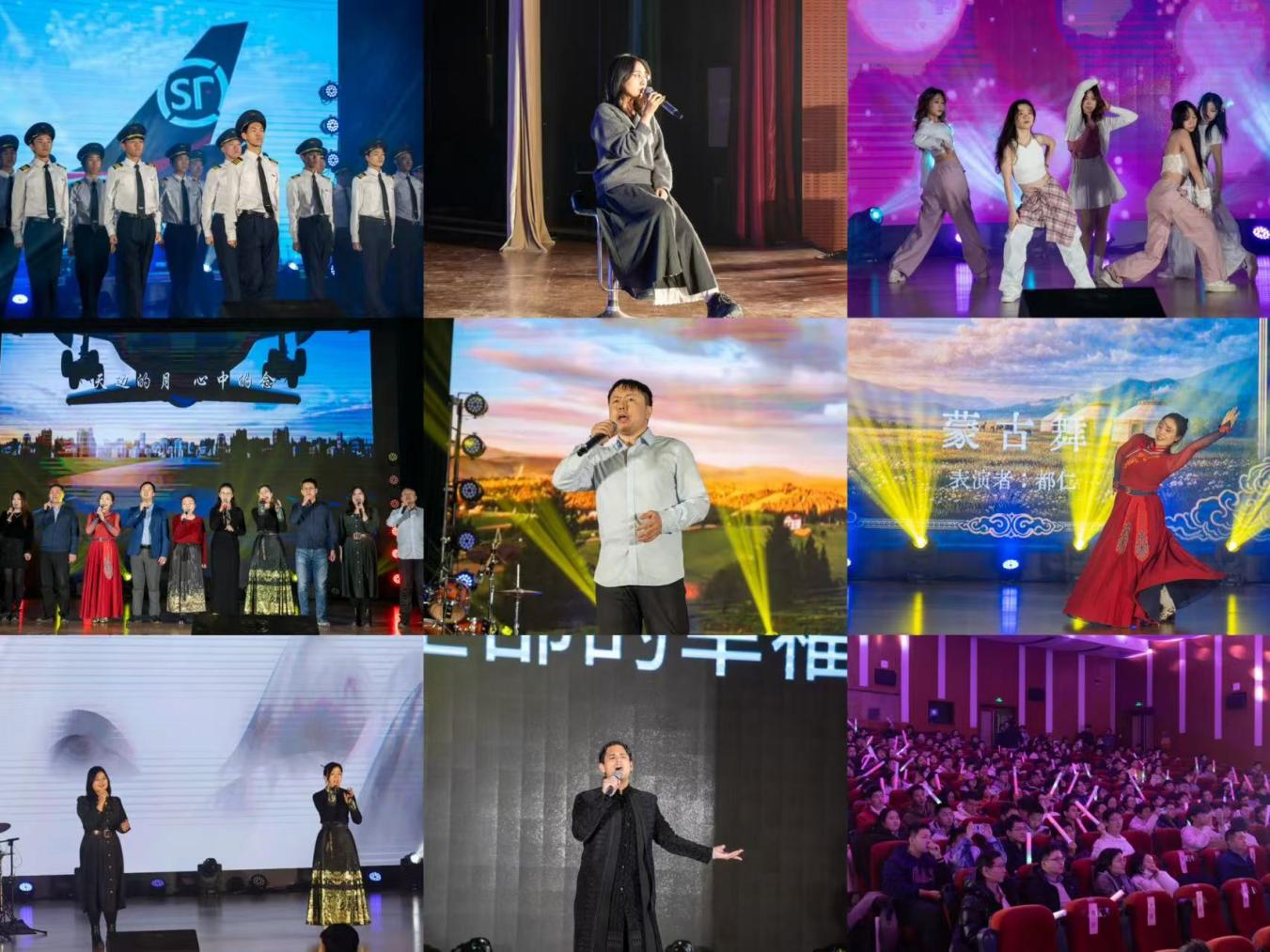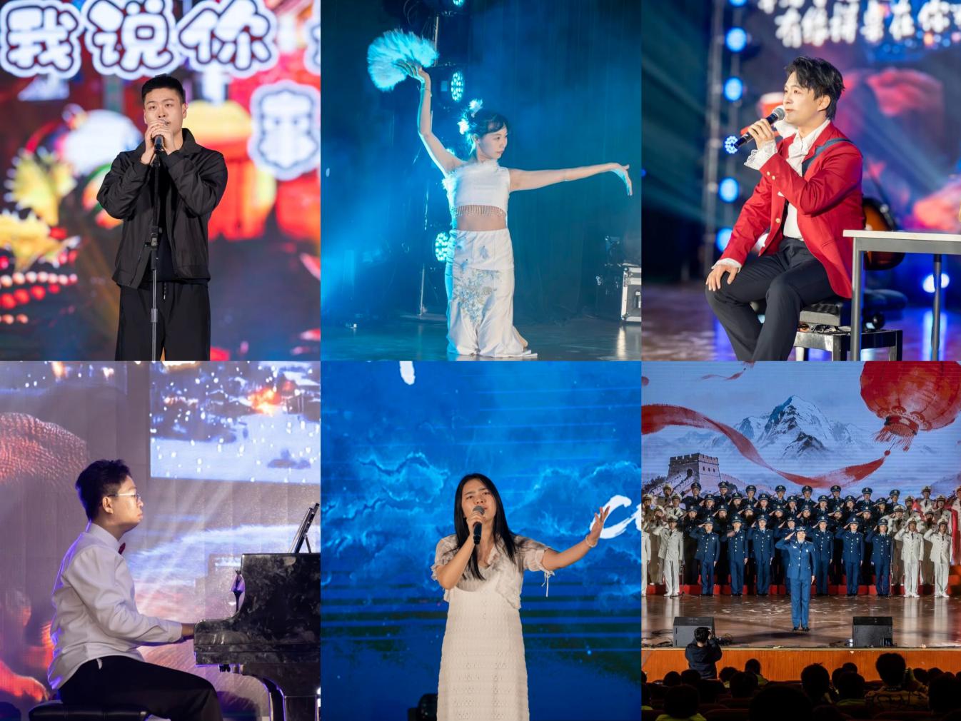 第四篇章“擎云驭风·梦之无垠”寄托了对未来的无限憧憬。杨一夫的《童话》温暖人心,汪玥彤的傣族舞《越鸟》展现民族风情,闫晨鑫、张峰硕的《方的言》用各地方言凝聚同窗情谊,习宴澳明的《世界赠予我的》引发共鸣。最终,晚会在2025级双学籍飞行学员铿锵激昂的合唱《祖国不会忘记》《我爱祖国的蓝天》中落下帷幕。歌声嘹亮,唱出了航空学子投身国防、矢志蓝天的初心与壮志。