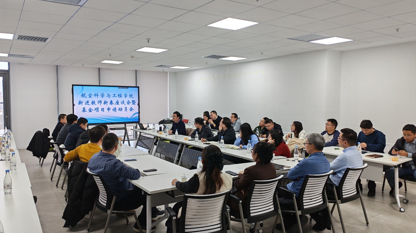 (通讯员:徐玲)2026年1月6日中午12时,航空学院新进教师新春座谈会暨基金项目申报动员会在沙河科研2号楼720会议室顺利召开。本次会议旨在凝聚新进教师力量,送上新春祝福,同时部署基金项目申报工作,助力青年教师快速成长。学院院长潘翀出席会议,副院长周尧明主持会议,高振勋、王磊两位教师分享申报经验,40余名新进教师参会,现场氛围热烈融洽。