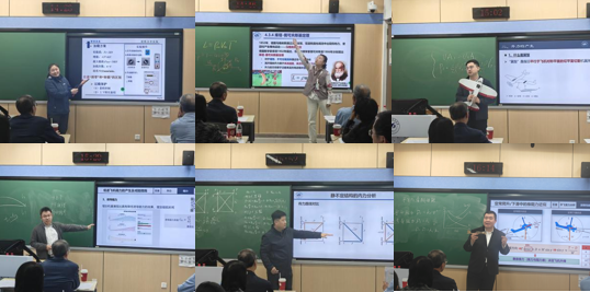 在教学展示环节,6位参赛教师依次登台展示教学片段:赵婧讲解材料力学实验电测法操作要点,胡姝瑶结合实际阐释空气动力学势流理论,安朝借助教具演示伯努利原理与飞机升力,赵仕伟解析固定翼增升减阻方法,王晓东以板书引导学生掌握结构力学力法求解,张良从模飞实践切入讲解平飞与滑翔性能。教师们以航空工程问题为导向,运用多媒体与互动设计调动课堂氛围,展现扎实功底与创新思路。